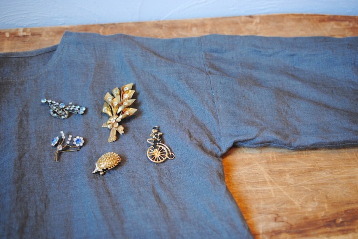 小さなブローチひとつ変えることで、同じ装いが別のものに変化をもたらします。