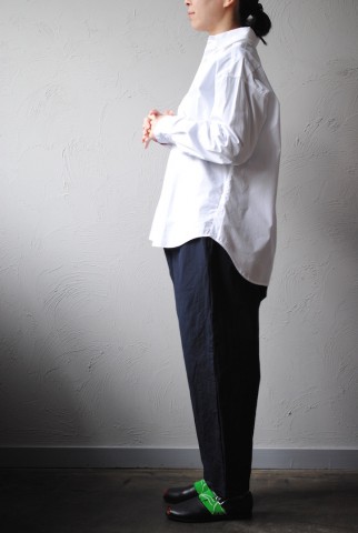 マリンパンツとトラウザーを混ぜたようなシルエット。