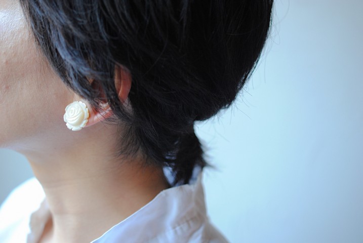 横顔は丸いフープの女性らしさと相まった絶妙なバランス。