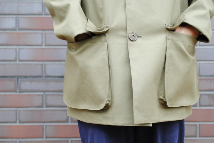 ハンティングジャケットを思わす、アウトドアスタイルのジャケットコート
