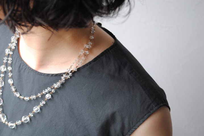 ゆったりと首に収まる、2連のボリュームと存在感が