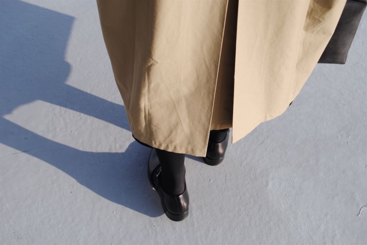 シンプルなステンカラーコートながら、