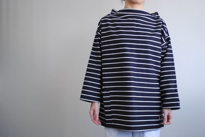 色違いのネイビーにはマリンルックでボーダーをチョイス。