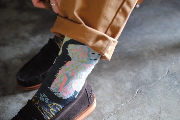 ある日は同系色のパンツと合わせて、靴下で少し外して遊んでみる。