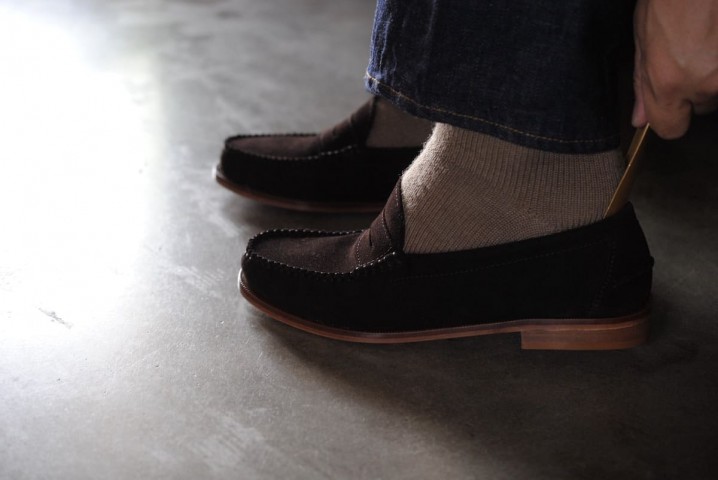 この秋はダークブラウンスエードレザーのペニーローファーを。