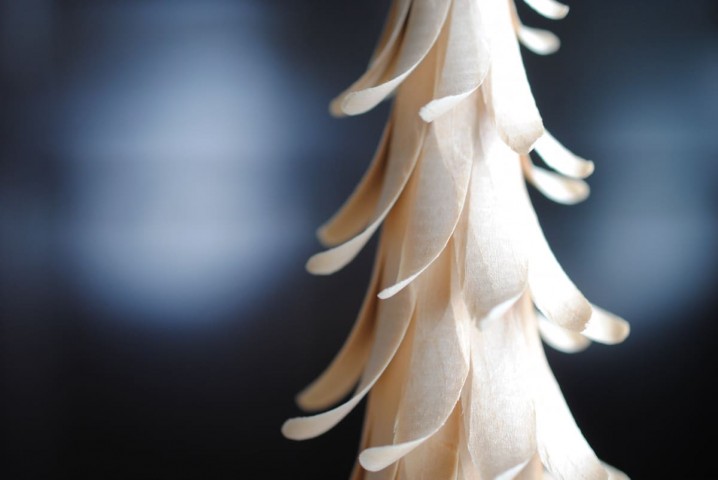 回転させながら木の表面をノミで削り作られた、躍動感溢れる木々。