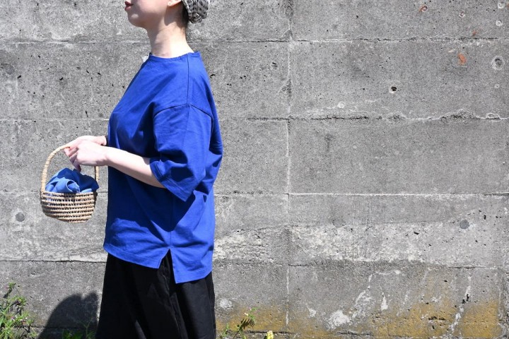 肩もゆったりとドロップショルダーで、5分袖丈になります。