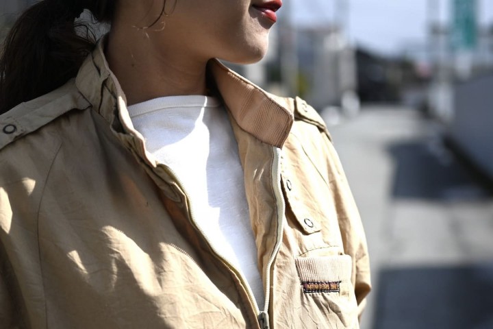ブルゾンから覗くシルエットも、きちんと感があり素敵です。
