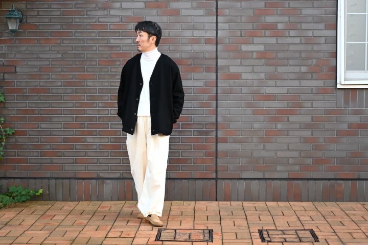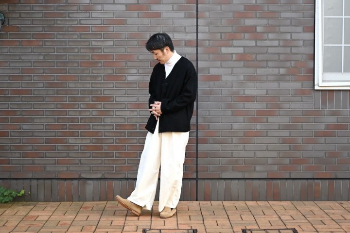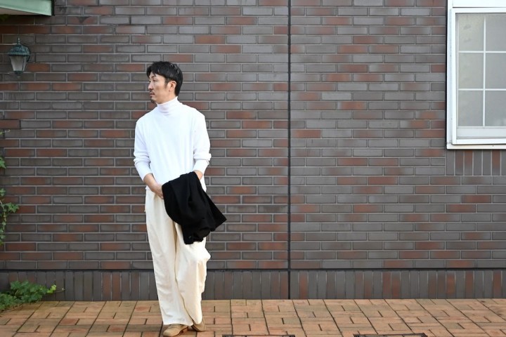 という重ね着も安易な、リラックスしたサイズ感。