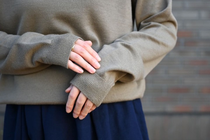 高級感があり、ジャケットとの合わせやオフィスワークの場でも馴染む、