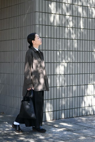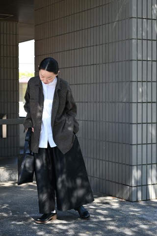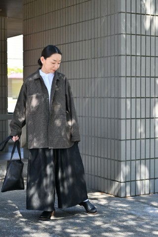 その上から「YARMO」を羽織れば、落ち着きの中に軽やかさが生まれる。
