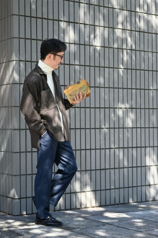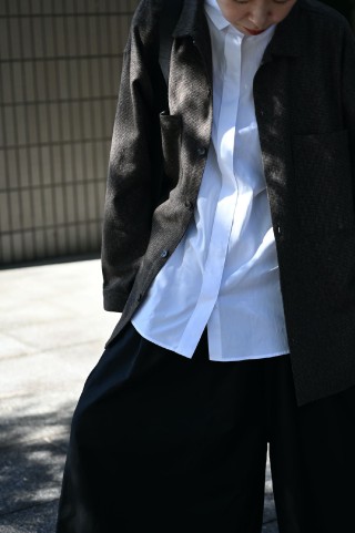 ウールのシャツをジャケット代わりにさらりと羽織って。