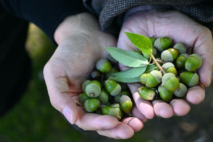 木の下には、どんぐりがそこらじゅうに転がっています。