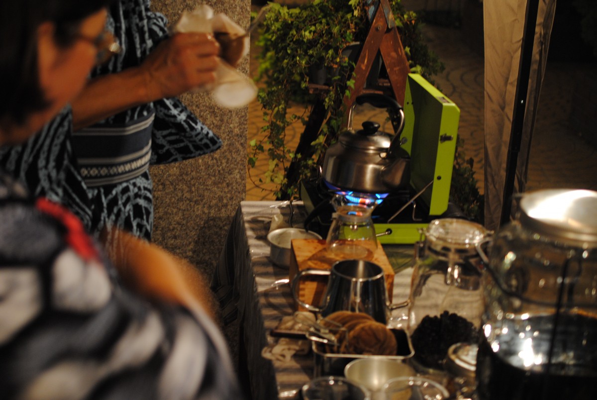 いつもは開放していない裏庭でコカチさんのコーヒー、