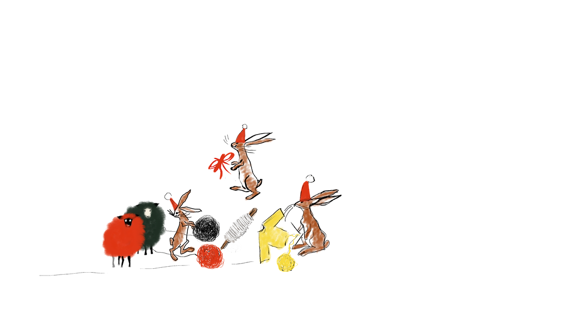 うさぎはやわらかな羊の毛を、くるくる紡いでセーターにしました。